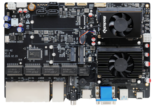 采用 Rockchip 高性能 AI 双芯方案,主模组统筹任务调度与数据预处理,RK182X 专注 AI 推理,其集成 20 TOPS NPU 与 3D RAM 堆叠架构,凭超高 DRAM 带宽可流畅运行 3B/7B 参数大模型,本地 AI 实时处理达毫秒级响应。硬件接口丰富,板载 10 个千兆网口,广泛适配智能网关服务器、机器人、AI 边缘计算、工业自动化、企业安防、交通管理、智慧城市、家庭存储等产品和领域