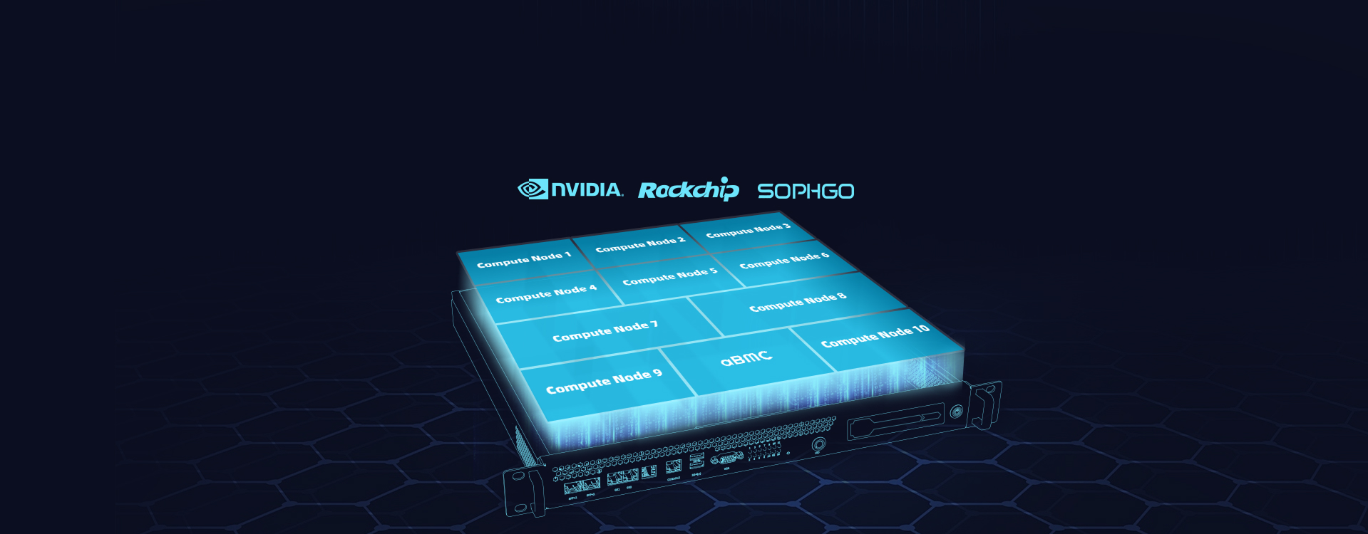 服务器内置 10 个分布式计算节点,单节点可提供 6 -157 TOPS 算力,可选瑞芯微、算能、NVIDIA 等平台。支持主流 AI 大模型的私有化部署、多种深度学习框架。拥有 2 个万兆网口和千兆网口,可扩展 SATA 3.0 硬盘。配套智能管理系统,标准的 1U 机架服务器机箱设计,广泛适用于边缘计算、大模型本地化、智慧城市、智慧医疗、智慧工业、智能安防等产品和领域。