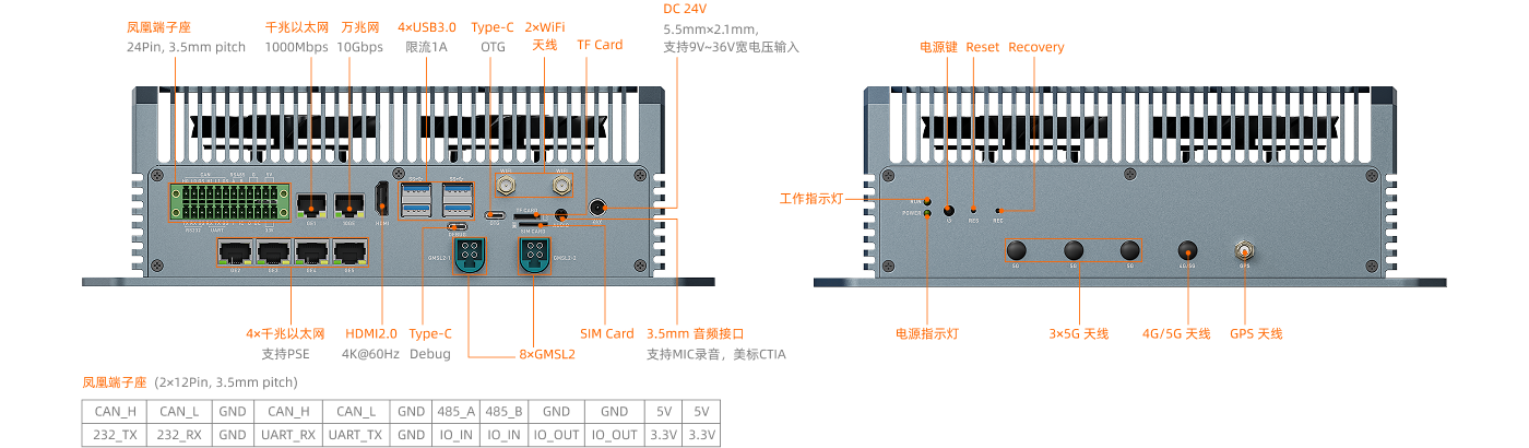 8 × GMSL2(通过2个4Pin的Mini FAKRA接口输入) |
